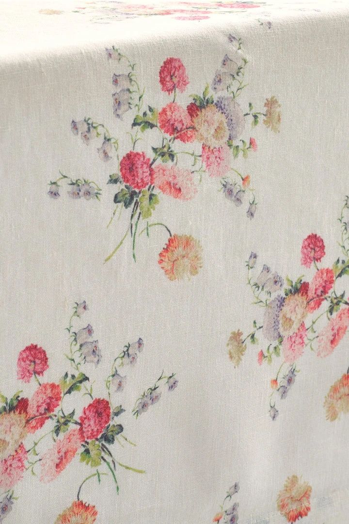 Our Tablecloth—in linen with an interiors-inspired floral and vine print—measuring 70″ x 96″ brightens any occasion. This timeless piece is finished with a rectangular interior panel of inset embroidery and a stitched trim.
