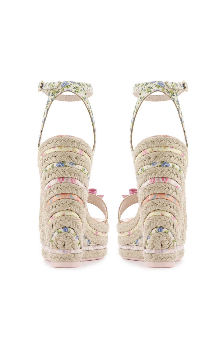 LoveShackFancy x Sophia Webster collection is here! Meet your go-to summer sandal. Sophia Webster’s fabulous Lucita Espadrille is reimagined in a rainbow array of signature LoveShackFancy floral prints among intricately woven matte rafia braids. Shown here in Tropical Island Multi.