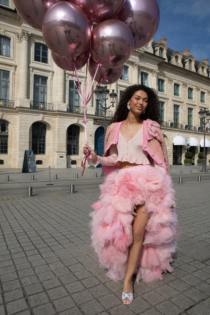 LoveShackFancy x Sophia Webster collection is here! We’re having a mule moment. This major mule from Sophia Webster gets a LoveShackFancy touch with our pretty in pink, classic rosebud print finished with a delicate ruched and a pastel rainbow butterfly shape buckle. Shown here in Antique Rosebud.