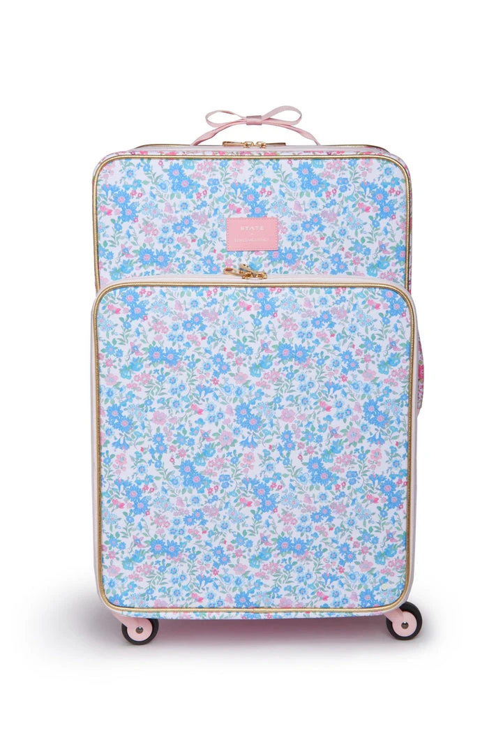 The Check In Size Logan Suitcase by LoveShackFancy x STATE is a dream on wheels. She’s functional, but cute, displaying pretty pink and blue florals all over, and designed to make travel easy. This suitcase features two main interior compartments, a separate mesh pocket, a front pocket with multiple slip pockets, 360˚ spinner wheels, and top and side carry handles. Complete the set with our LSF x State Kane Backpack. Shown here in Bay Breeze Multi.