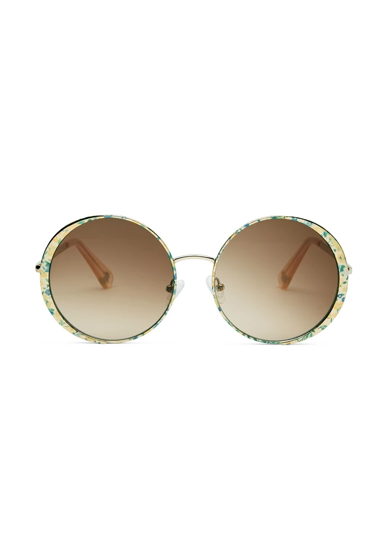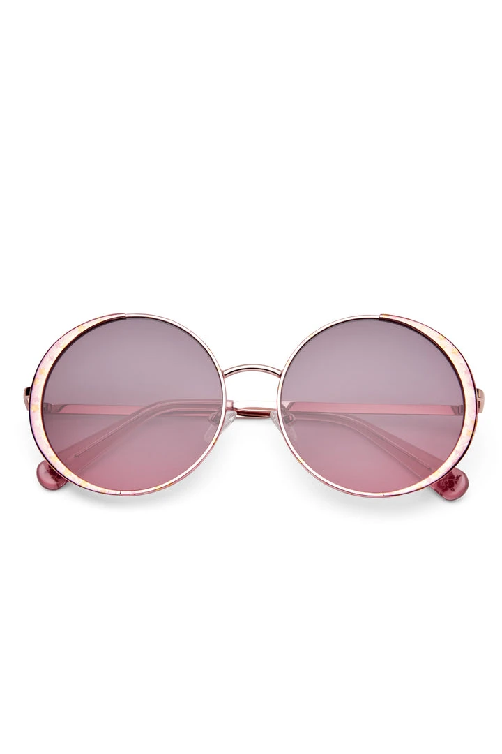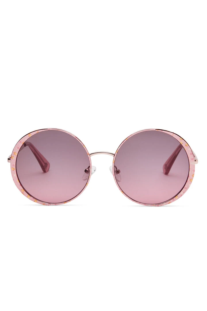 Channeling our inner 70s goddess in these vintage-inspired shades. These sunglasses feature an oversized, round shape with a sleek outside print for a modern finish. Wear them with our Audrina Mini Dress.