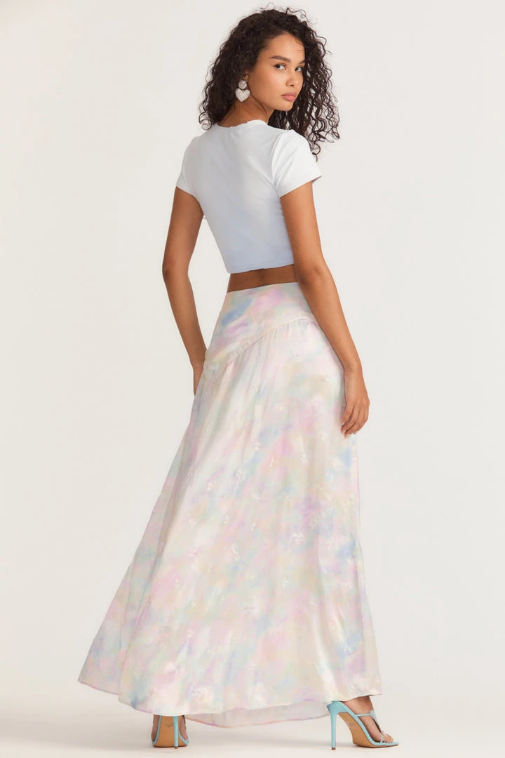 Introducing our Gracia Skirt, an irresistible silk maxi skirt inspired by sourced vintage slips. Our beloved Ziggy Skirt gets a seasonal update featuring a high slit, princess seams and custom lace embroidery detail throughout. Wear it as a set with our Lisanne Crop Top. Shown here in Fairytale Tie Dye.