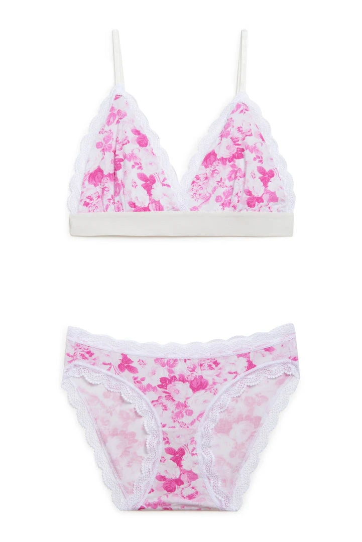Made with sensationally soft, sustainable fabric, TENCEL™, the Palm Beach Rose Bralette and Knicker Box are the sweetest set of intimates. The bralette and knicker box features lace trims lining the silky-smooth, pink floral-printed fabric for a flirty flair. The matching bralette has a supportive elastic band for maximum comfort. Shown here in Palm Beach Rose.